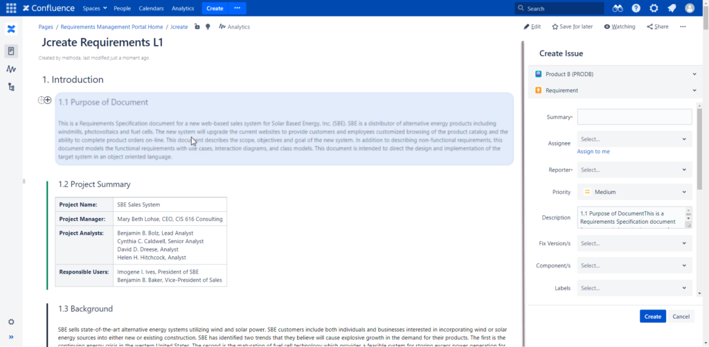 By using Confluence with our JCreate app, users can easily turn their content into issues in Jira without ever switching apps. Jcreate displays Jira’s powerful screen and field configurations within the Confluence editing experience.